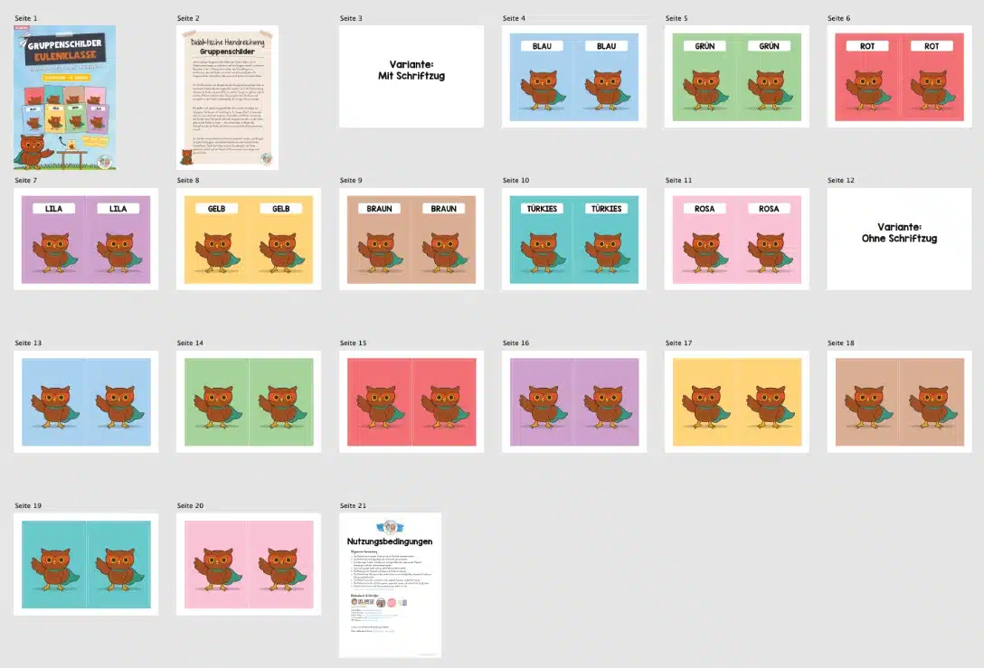 Hier findet ihr Gruppenschilder für die Eulenklasse.