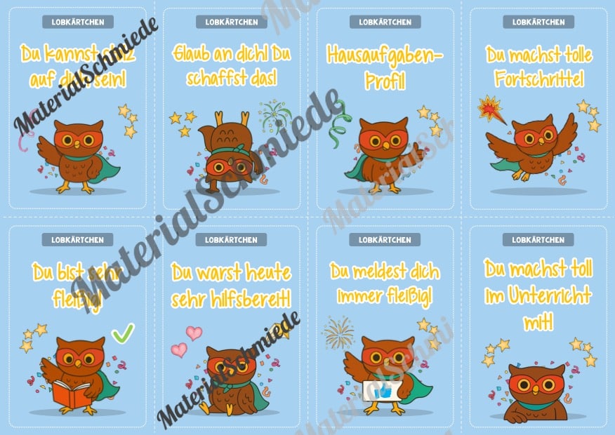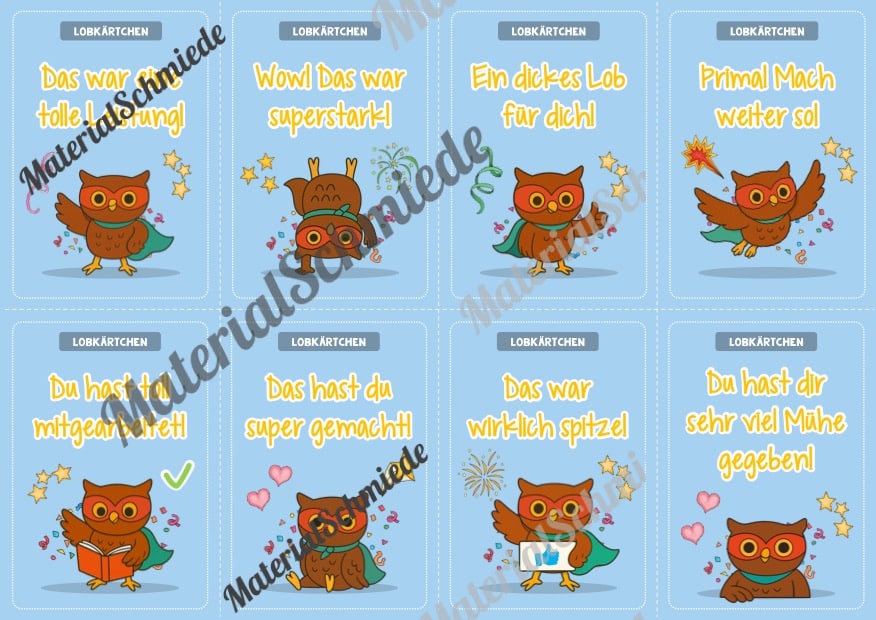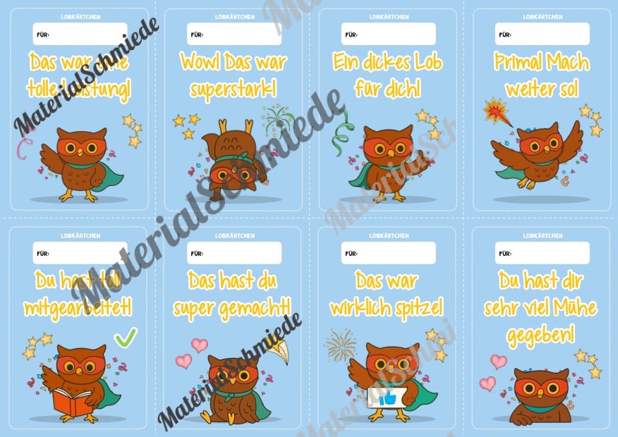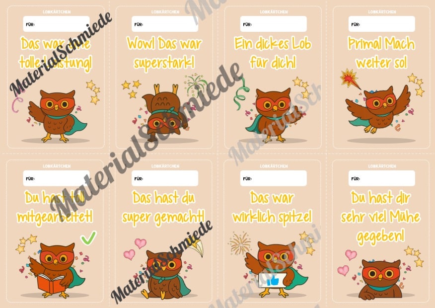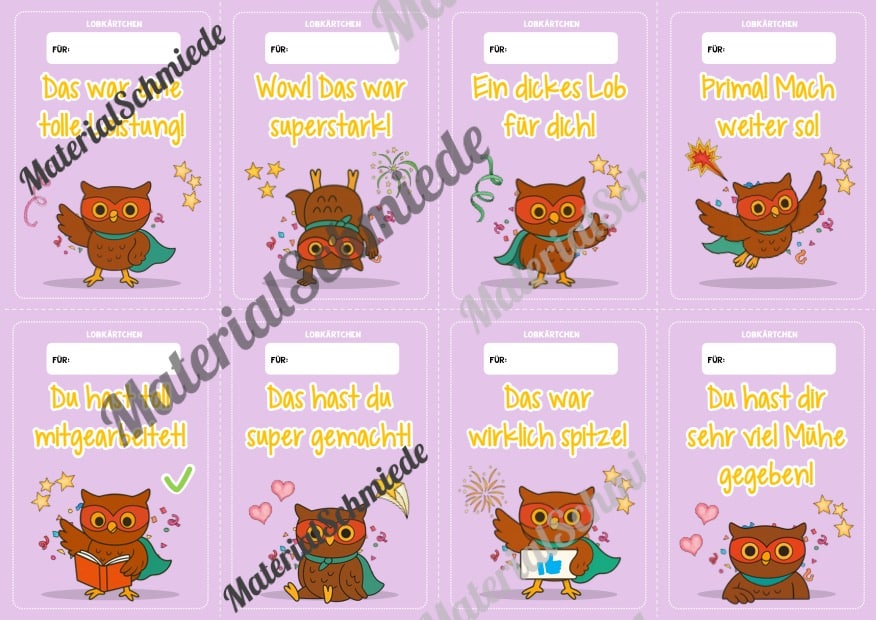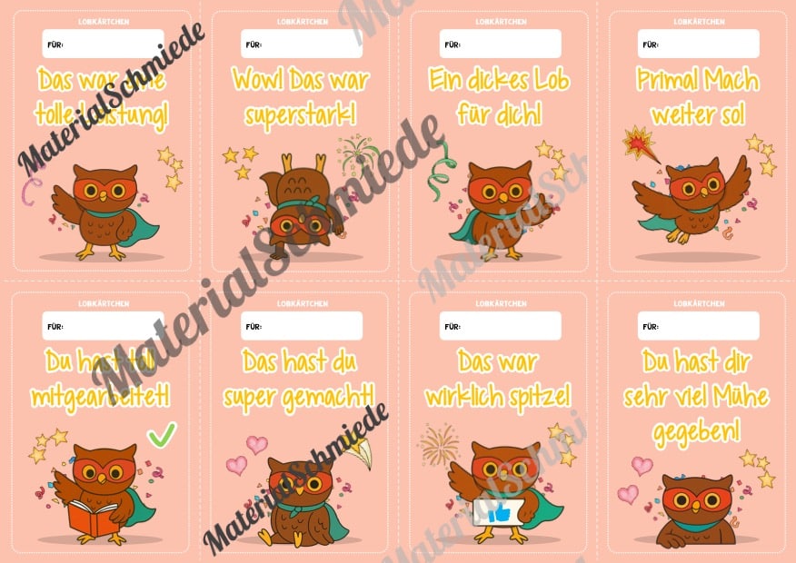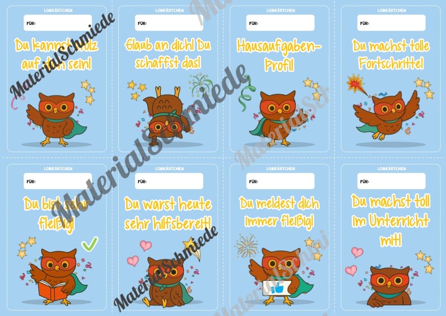 Hier findet ihr Lobkärtchen für die Eulenklasse.