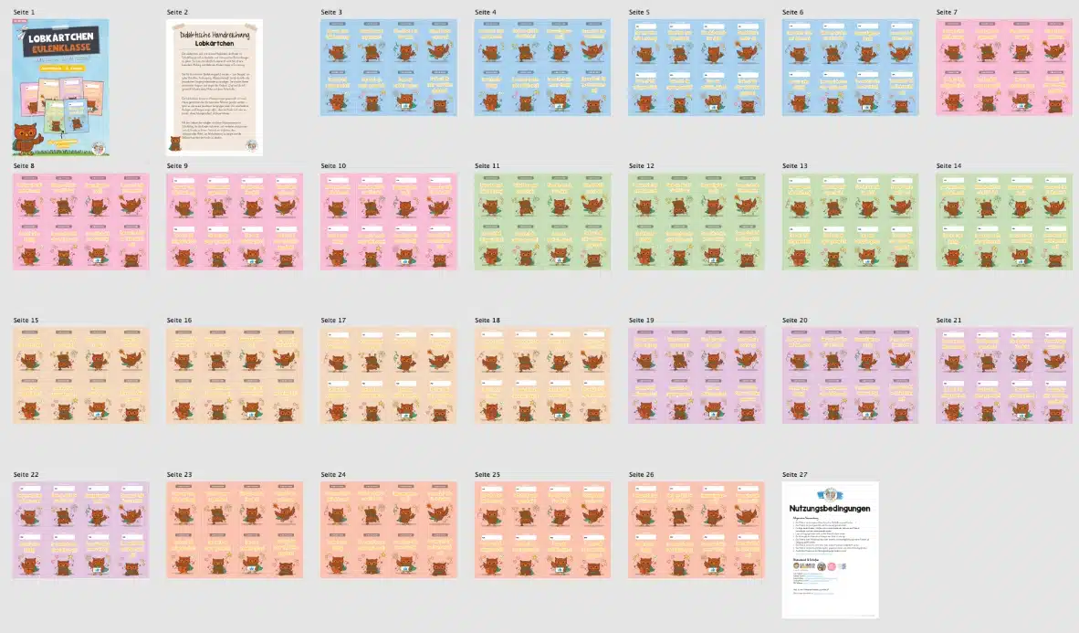 Die Lobkärtchen können im Klassenzimmer gesammelt, mit nach Hause genommen oder für besondere Aktionen genutzt werden – ganz so, wie es zur jeweiligen Lerngruppe passt. Die verschiedenen Vorlagen und Designs sorgen dafür, dass die Kinder sich über ein buntes, abwechslungsreiches Lob freuen können.