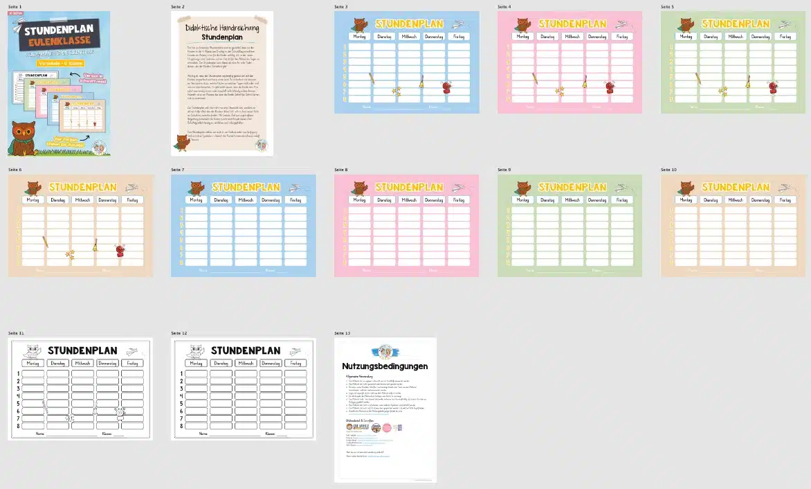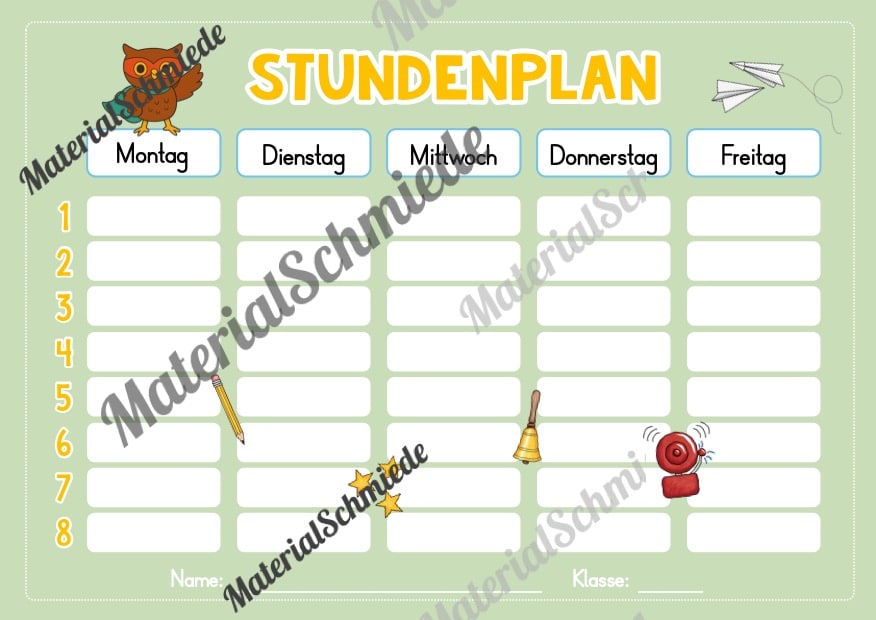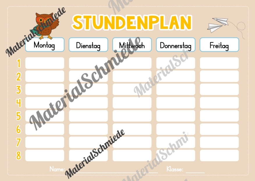 Hier findet ihr Stundenplan-Vorlagen für die Eulenklasse.