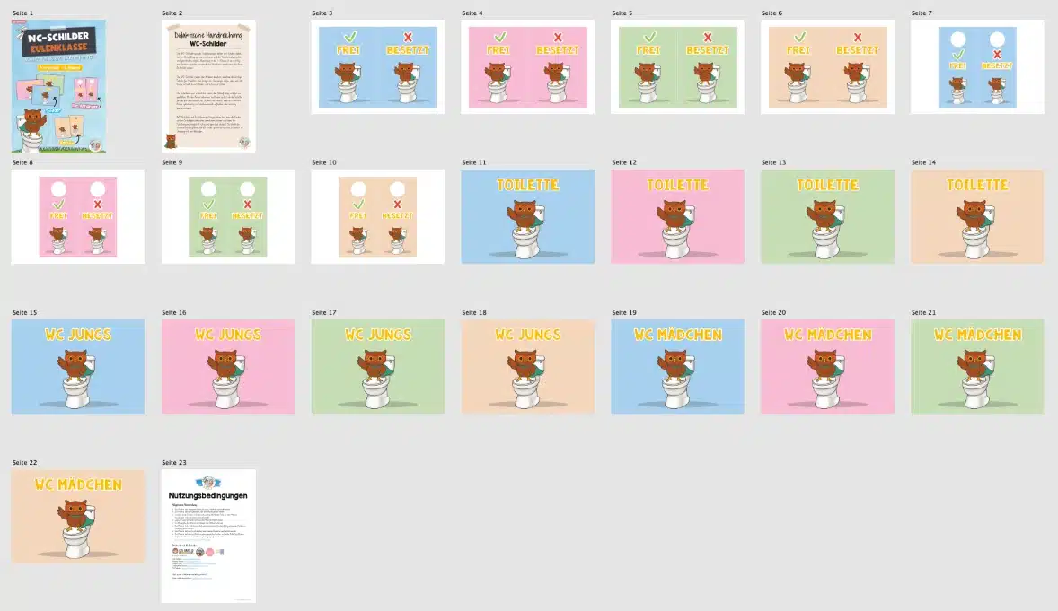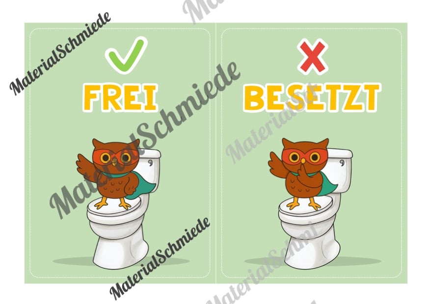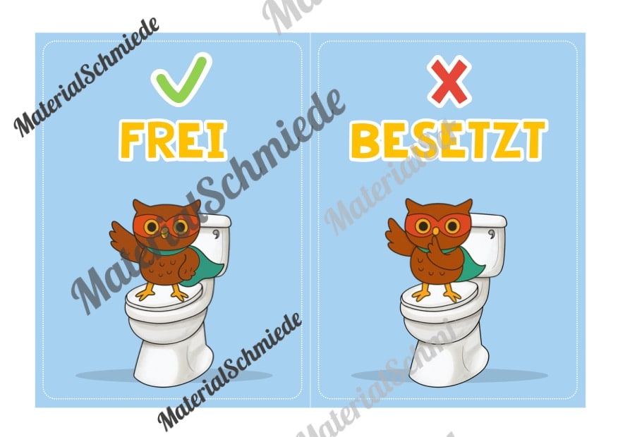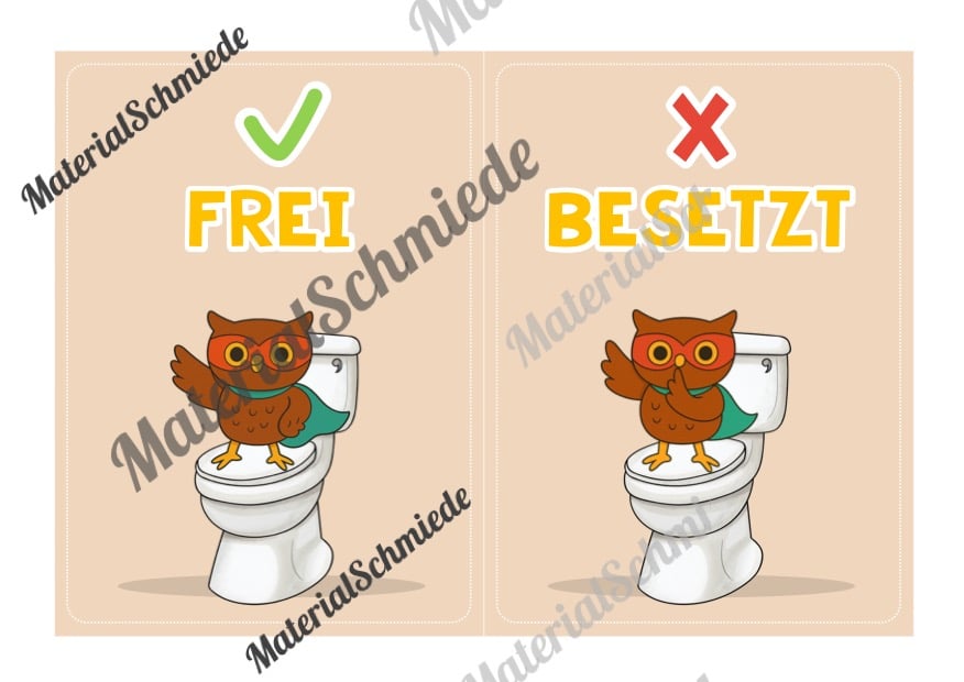 Hier findet ihr WC-Schilder und Schilder für die Toiletten-Ampel für die Eulenklasse.