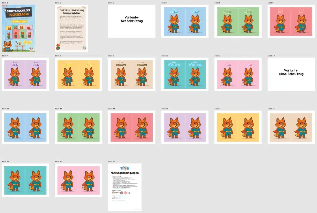 Hier findet ihr Gruppenschilder für die Fuchsklasse.