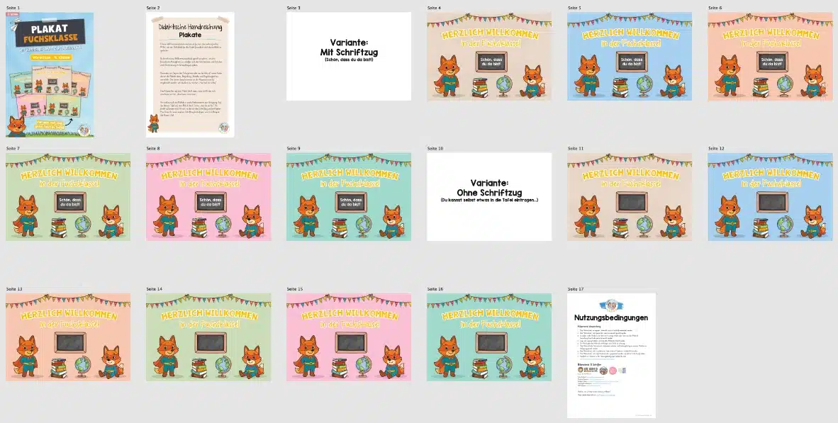Besonders zu Beginn des Schuljahres oder bei der Ankunft neuer Kinder dienen die Plakate dazu, Begrüßung, Struktur und Zugehörigkeit zu vermitteln. Sie können beispielsweise an der Klassenzimmertür angebracht werden, um deutlich zu machen: „Hier bist du richtig“.