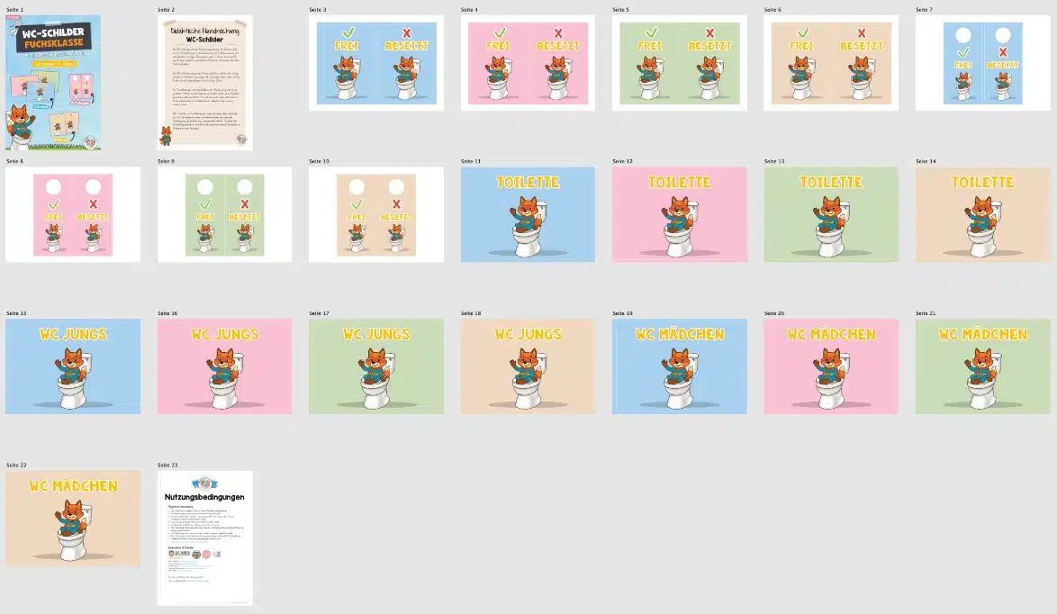 Hier findet ihr WC-Schilder und Schilder für die Toiletten-Ampel für die Fuchsklasse.