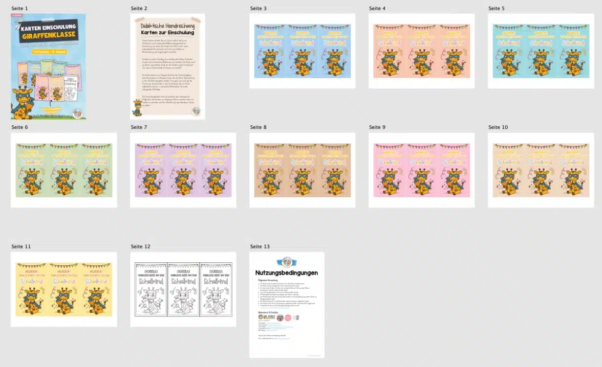 Hier findet ihr Karten zur Einschulung für die Giraffenklasse.