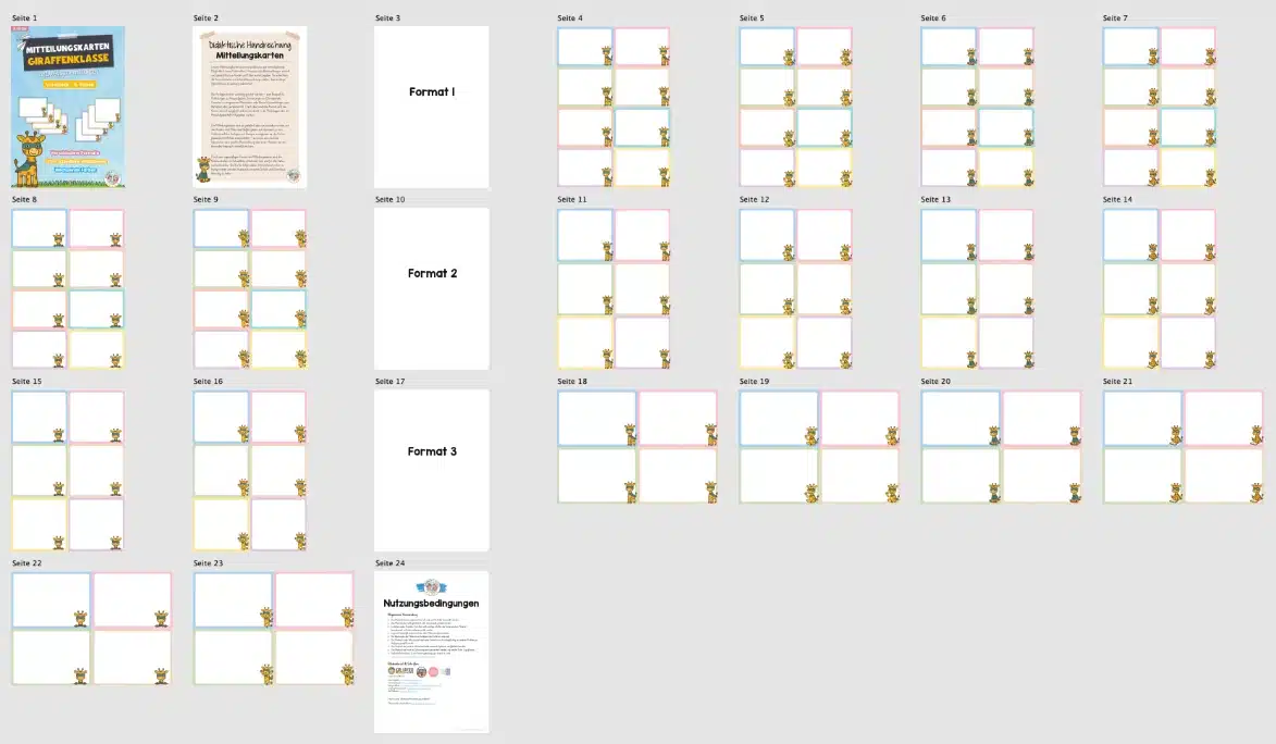 Hier findet ihr Mitteilungskarten für die Giraffenklasse.