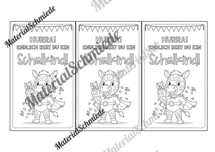 Das Motiv mit der Karte zur Einschulung stellen wir euch in 9 Farben sowie in schwarz-weiß zur Verfügung.