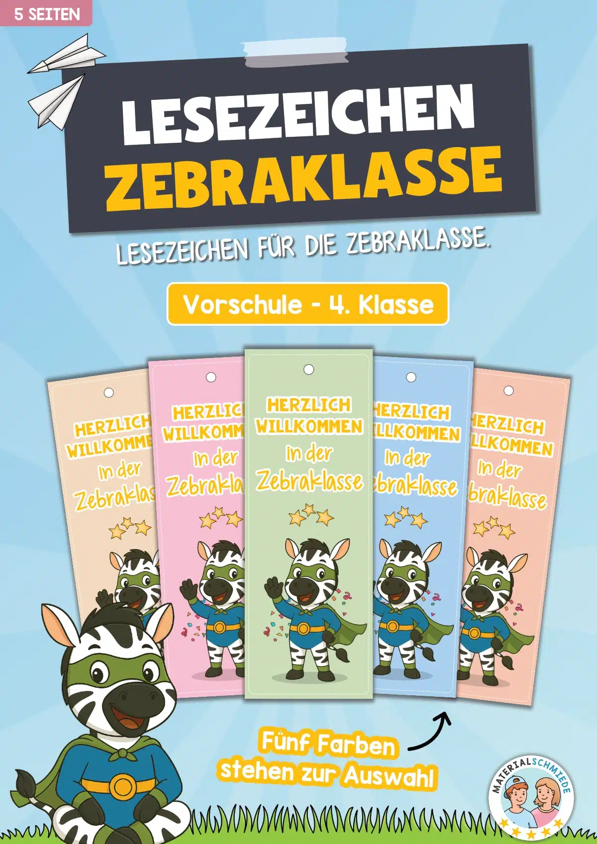 Hier findet ihr 5 Lesezeichen für die Zebraklasse.