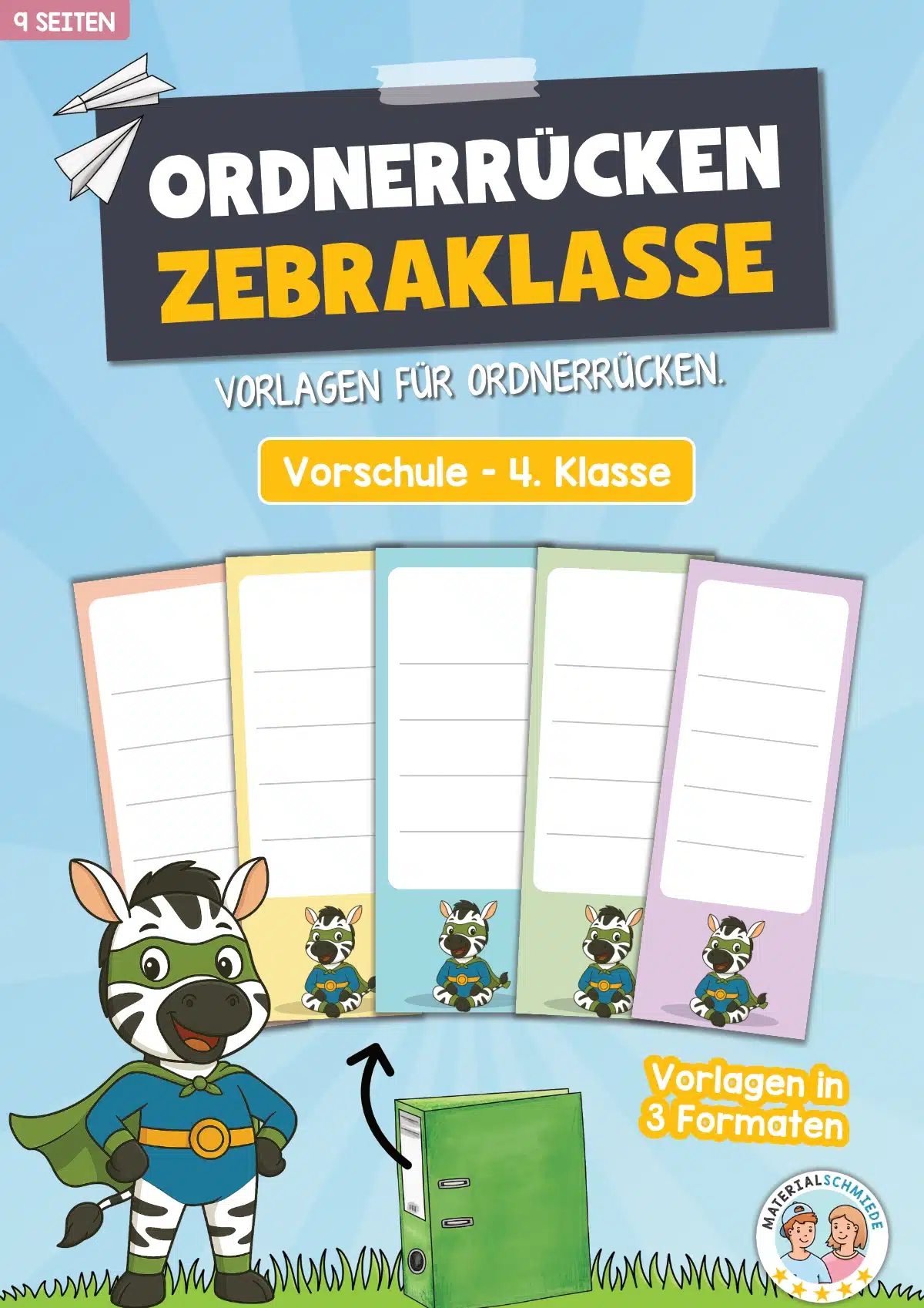 Sofern eure Klasse eine „Zebraklasse“ ist oder werden soll, eignen sich die Ordnerrücken perfekt.