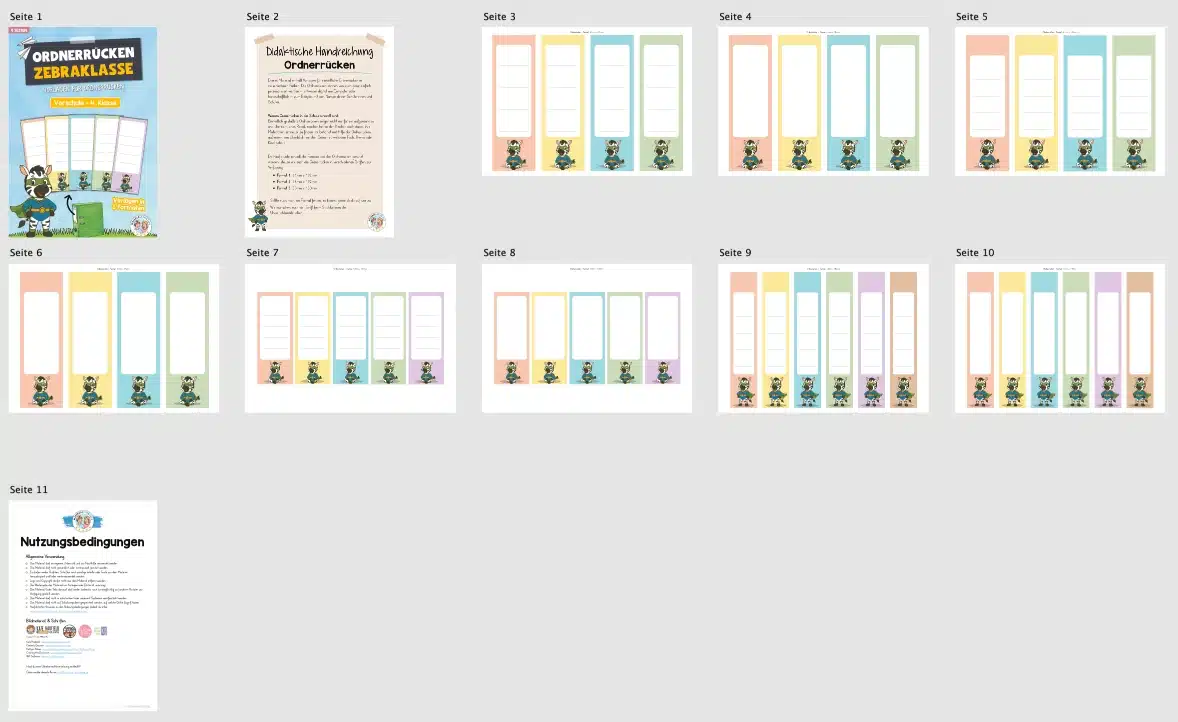 Hier findet ihr Vorlagen mit Ordnerrücken speziell für die Zebraklasse.