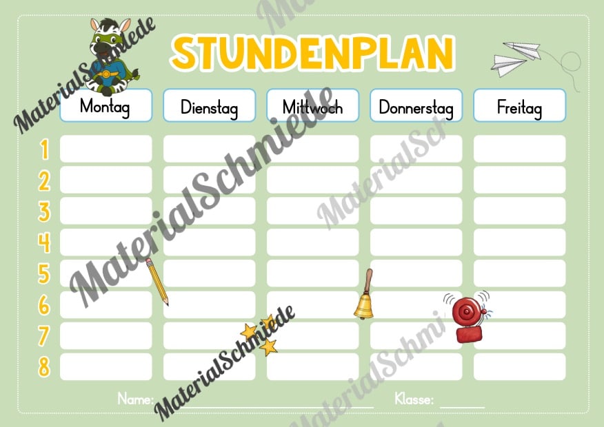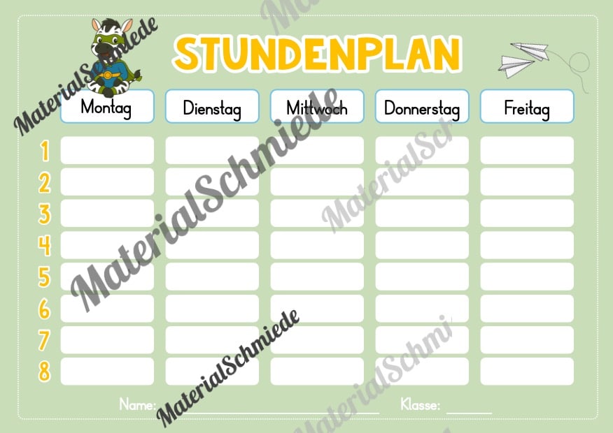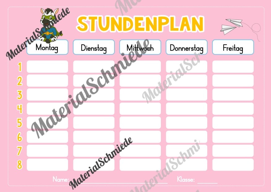 Hier findet ihr Stundenplan-Vorlagen für die Zebraklasse.