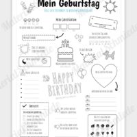 Bei diesem Steckbrief sollen die Schüler die wichtigsten Informationen rund um ihrem eigenen Geburtstag auf spielerische Art und Weise eintragen. Zu den Daten die ausgefüllt werden sollen, gehört beispielsweise: das Geburtsdatum, der Geburtsort, an welchem Tag dieses Jahr der Geburtstag stattfindet, was dem Schüler an seinem Geburtstag gefällt oder nicht, welche Wünsche es gibt oder auch was der Schüler gerne an seinem Geburtstag isst.