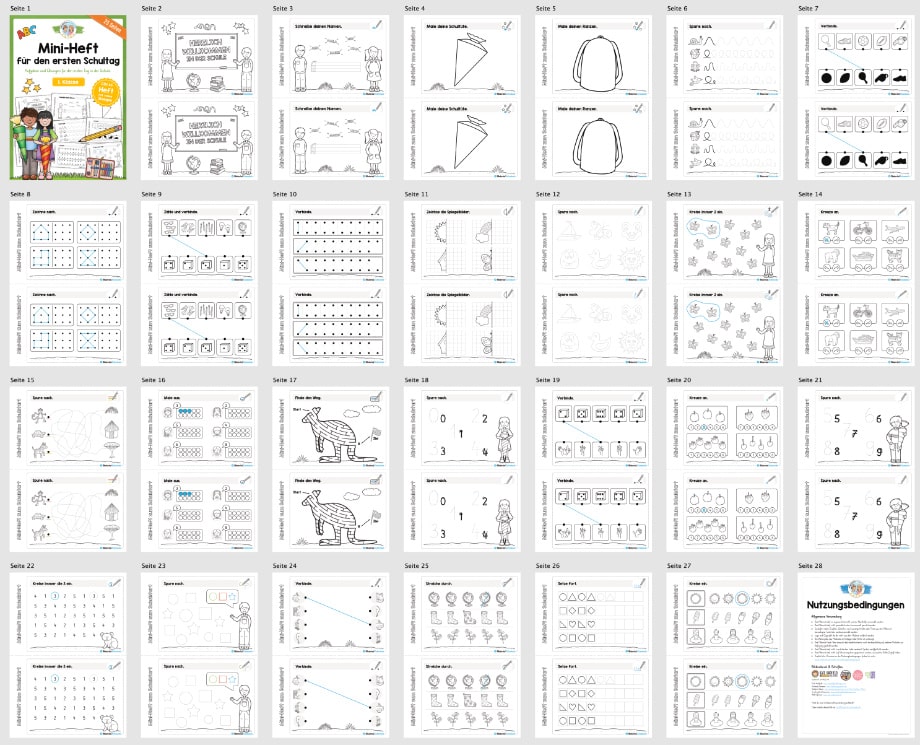 Mini-Heft für den ersten Schultag (25 Arbeitsblätter)