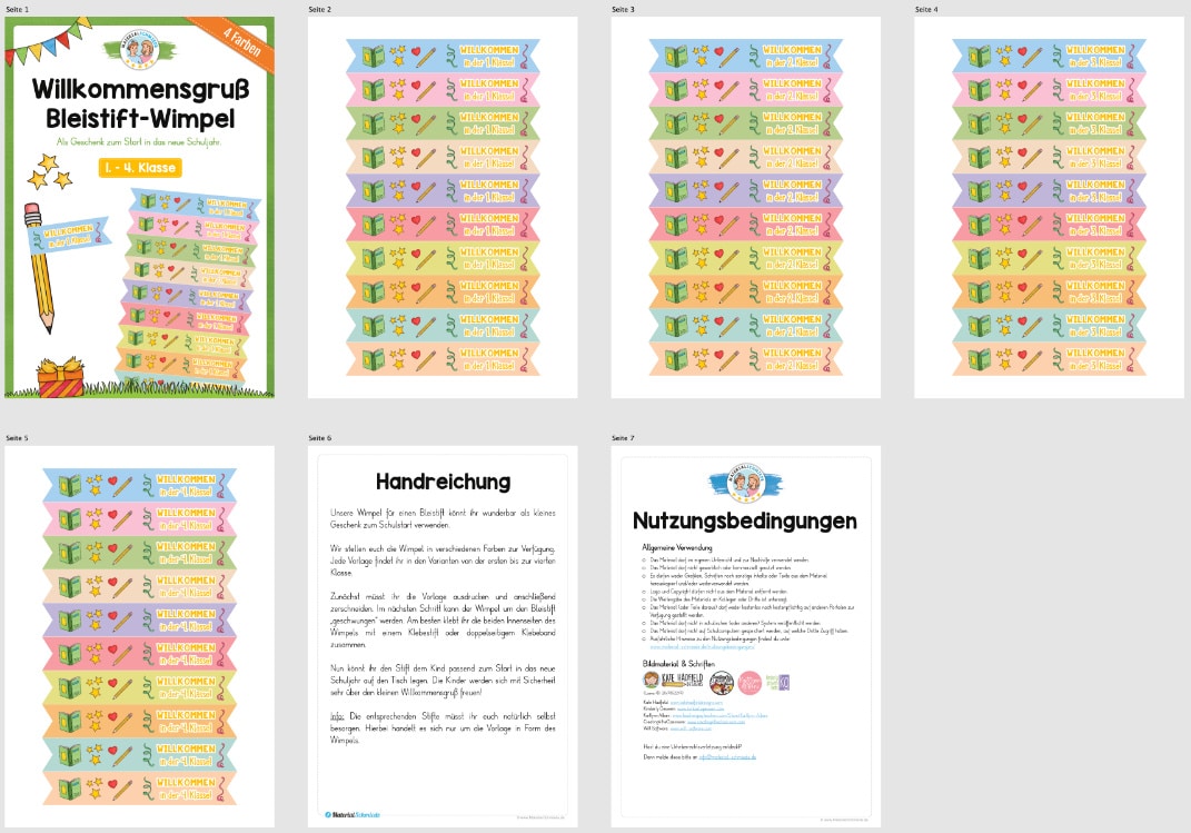 Wir stellen euch die Wimpel in verschiedenen Farben zur Verfügung. Jede Vorlage findet ihr in den Varianten von der ersten bis zur vierten Klasse.