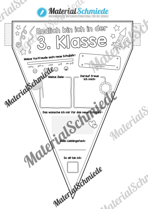 Mit Hilfe von diesem Wimpel können die Kinder ihre Ziele und Wünsche für das neue Schuljahr festhalten.