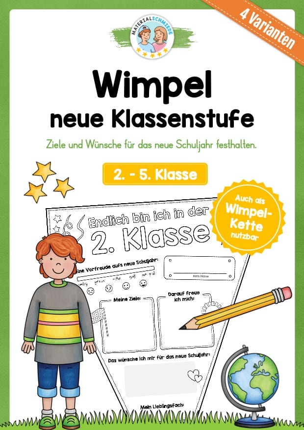 Den Wimpel stellen wir euch für 2. Klasse, 3. Klasse, 4. Klasse und 5. Klasse zur Verfügung (sind alle in dem PDF enthalten).