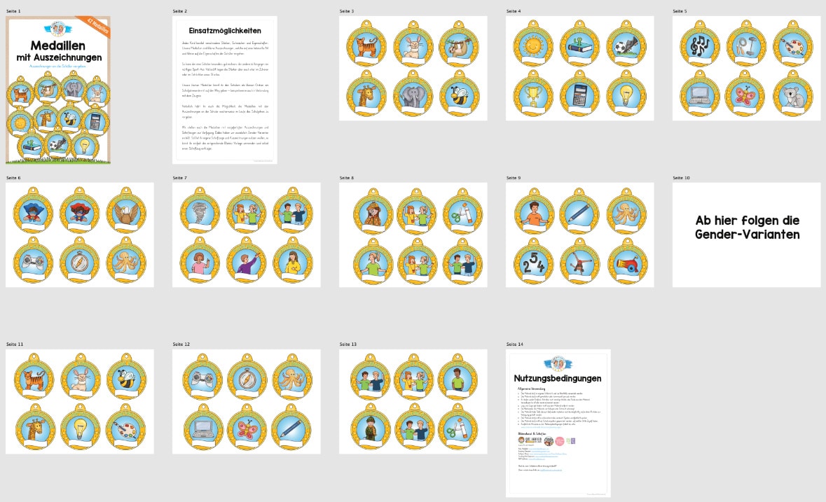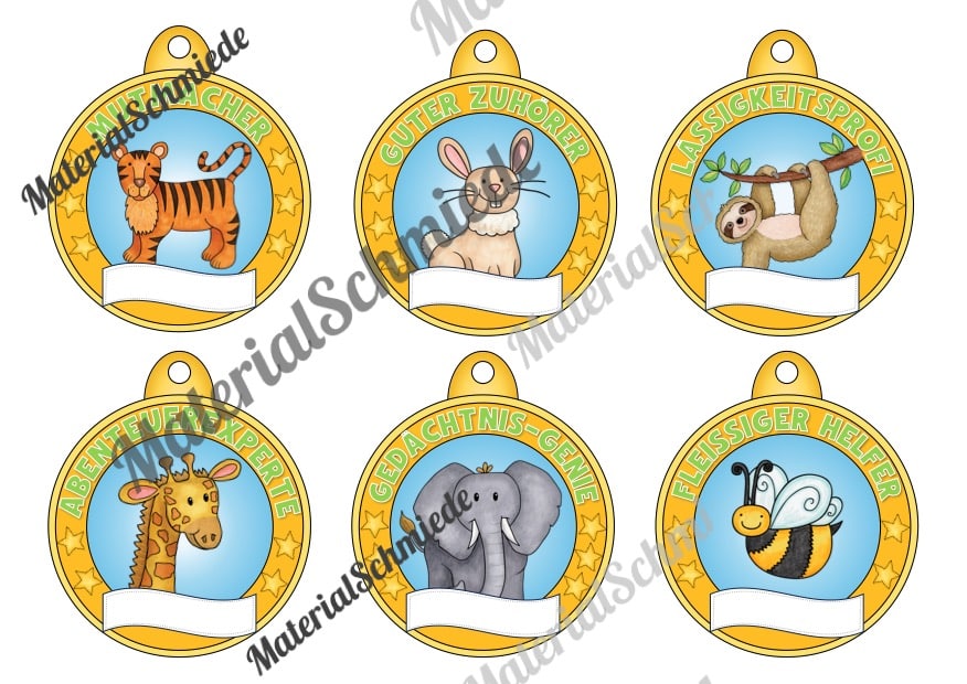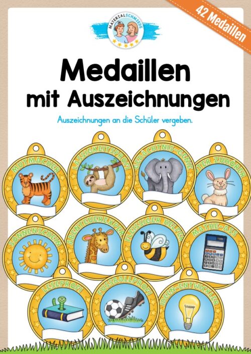 Hier findet ihr 42 Medaillen mit Auszeichnungen für Schulkinder.
