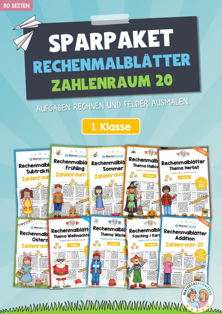 Sparpaket: 80 Rechenmalblätter (Zahlenraum 20)