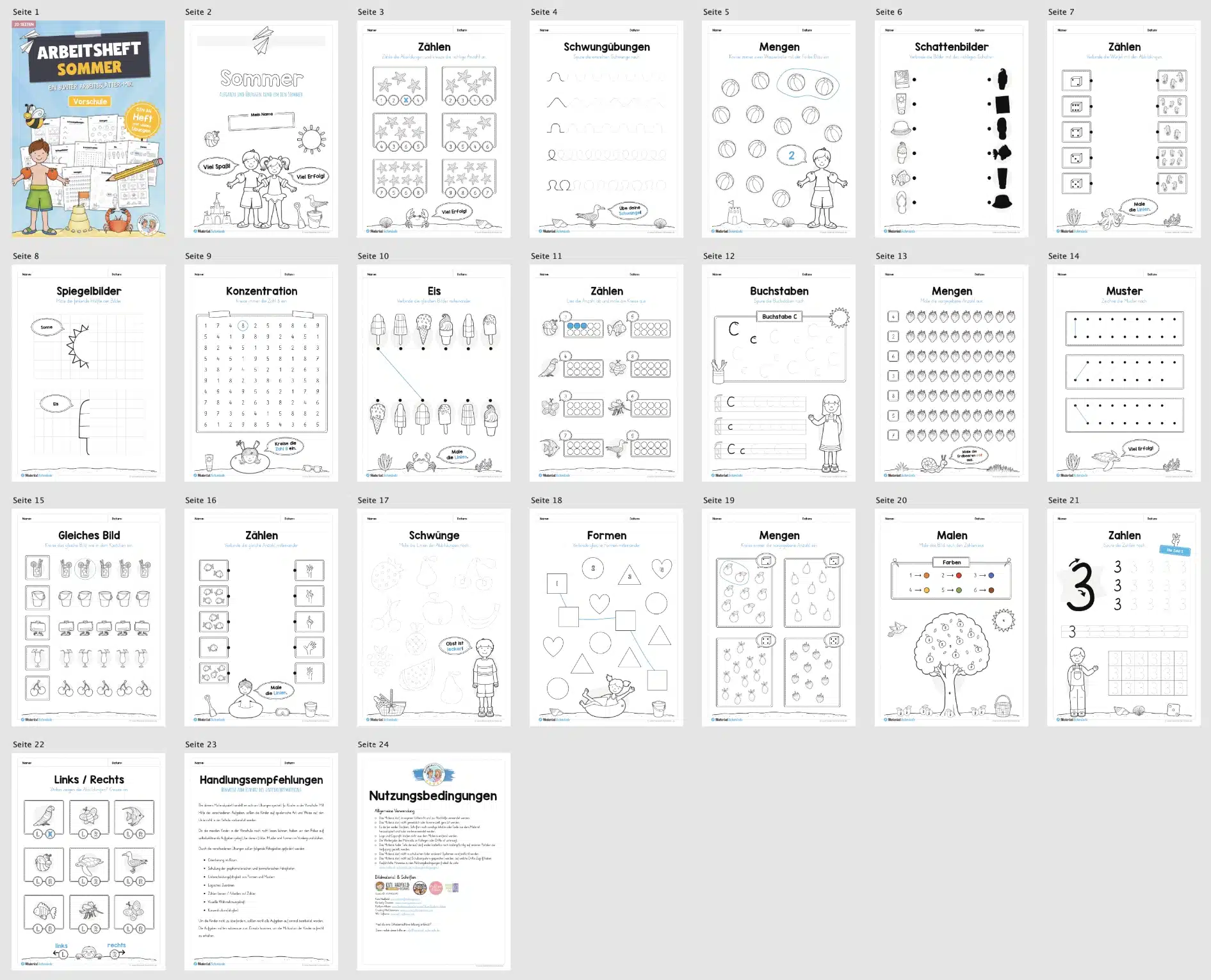 Hier findet ihr ein Arbeitsheft zum Thema Sommer für die Vorschule bestehend aus insgesamt 20 Seiten.