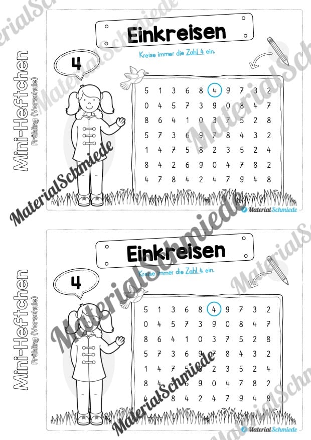 Im Einzelnen sind folgende Arbeitsblätter und Übungen in den Mini-Heftchen zum Frühling für die Vorschule enthalten: