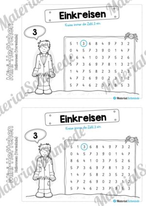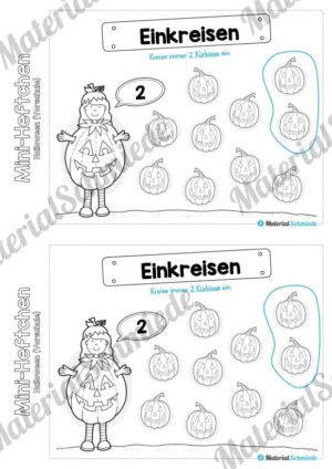Im Einzelnen sind folgende Arbeitsblätter und Übungen in den Mini-Heftchen zu Halloween für die Vorschule enthalten: