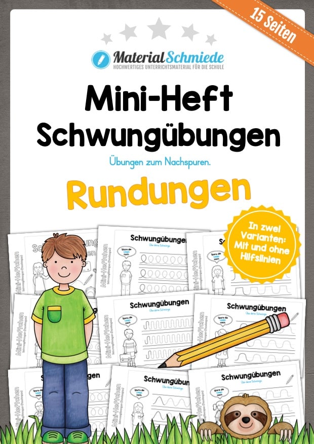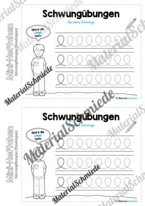 Hier findet ihr ein Mini-Heft zum Thema Schwungübungen mit dem Fokus auf Rundungen, welches 15 Arbeitsblätter enthält.